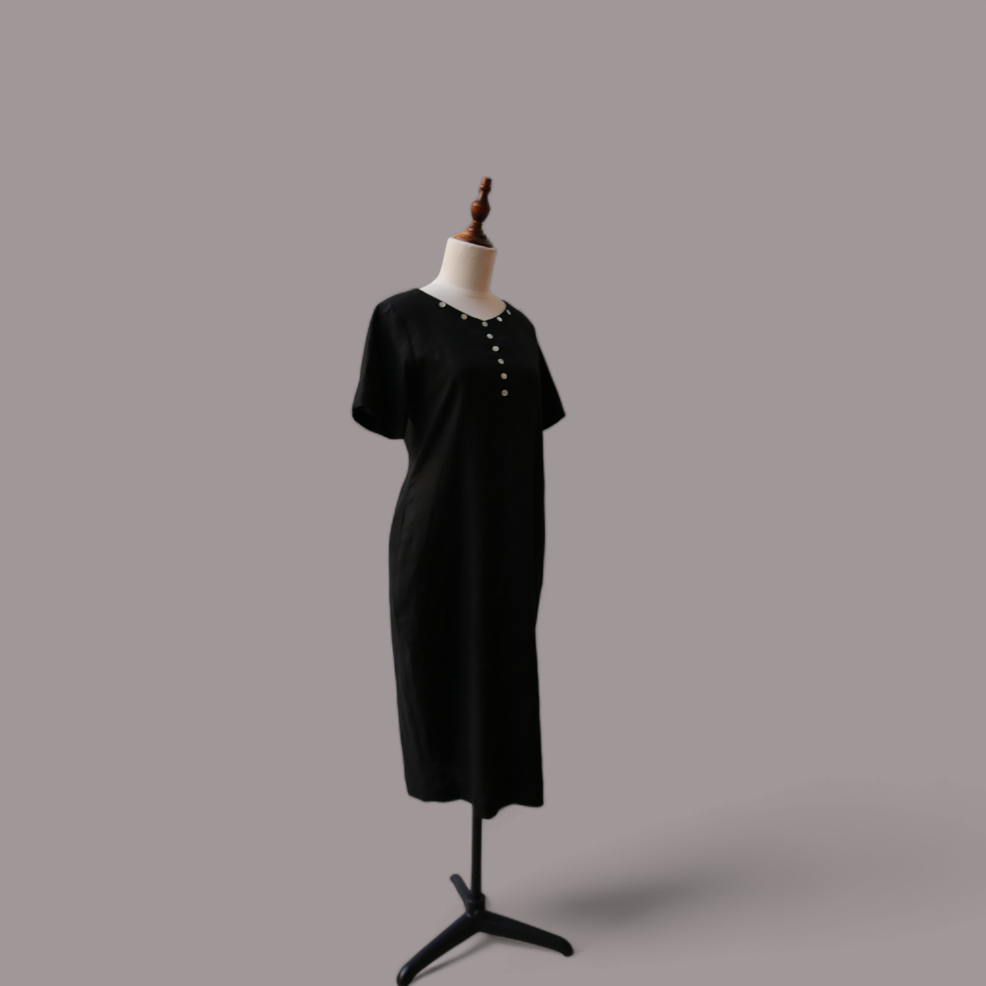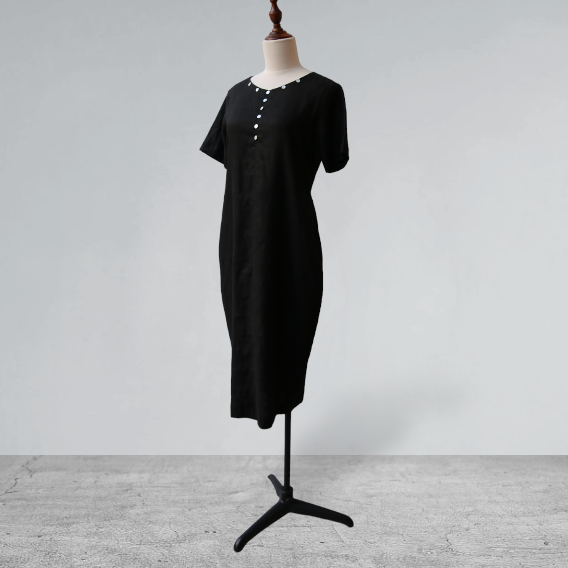 Đầm dài dáng ôm đính nút xà cừ linen tưng premium - ANAM