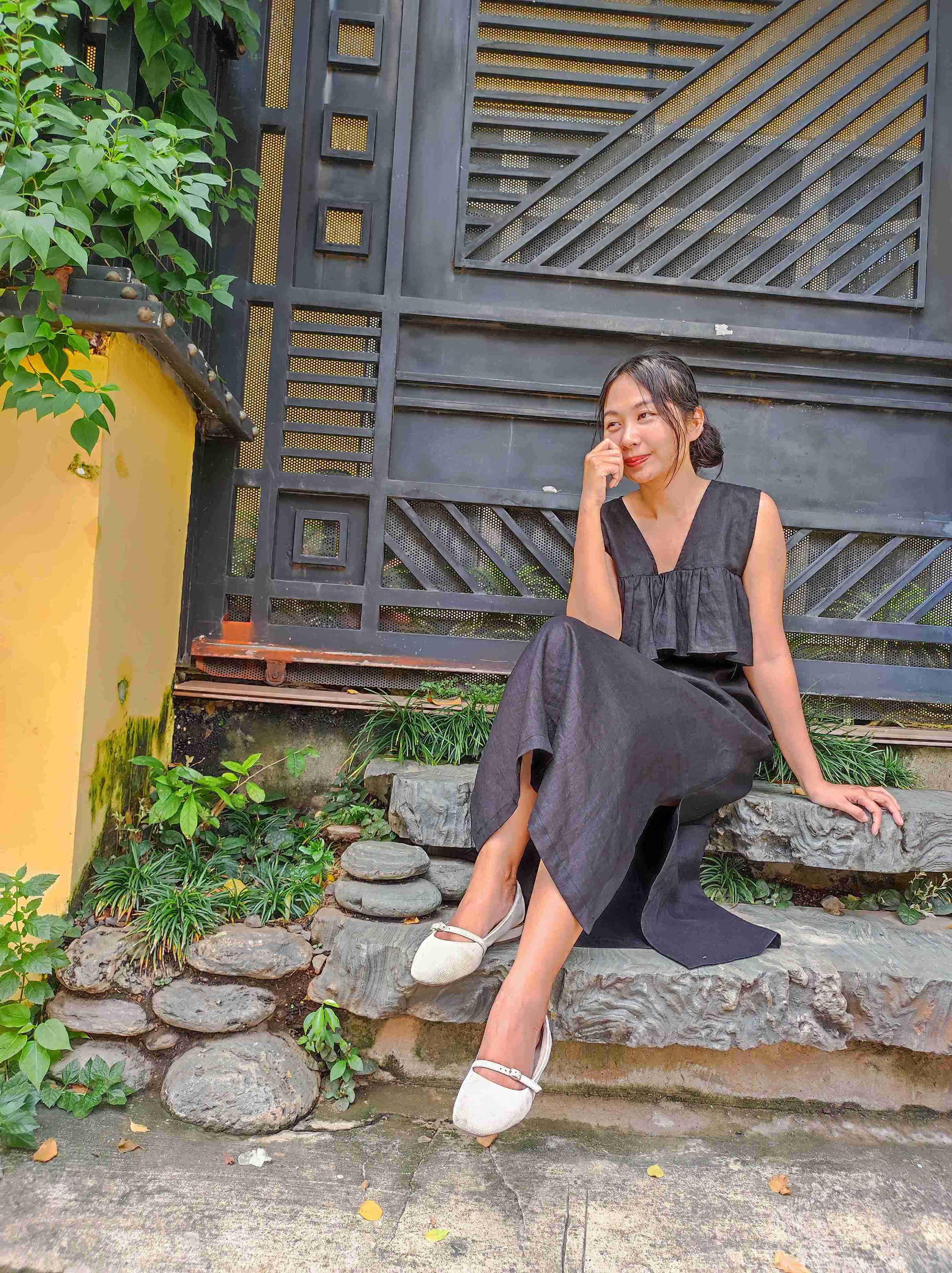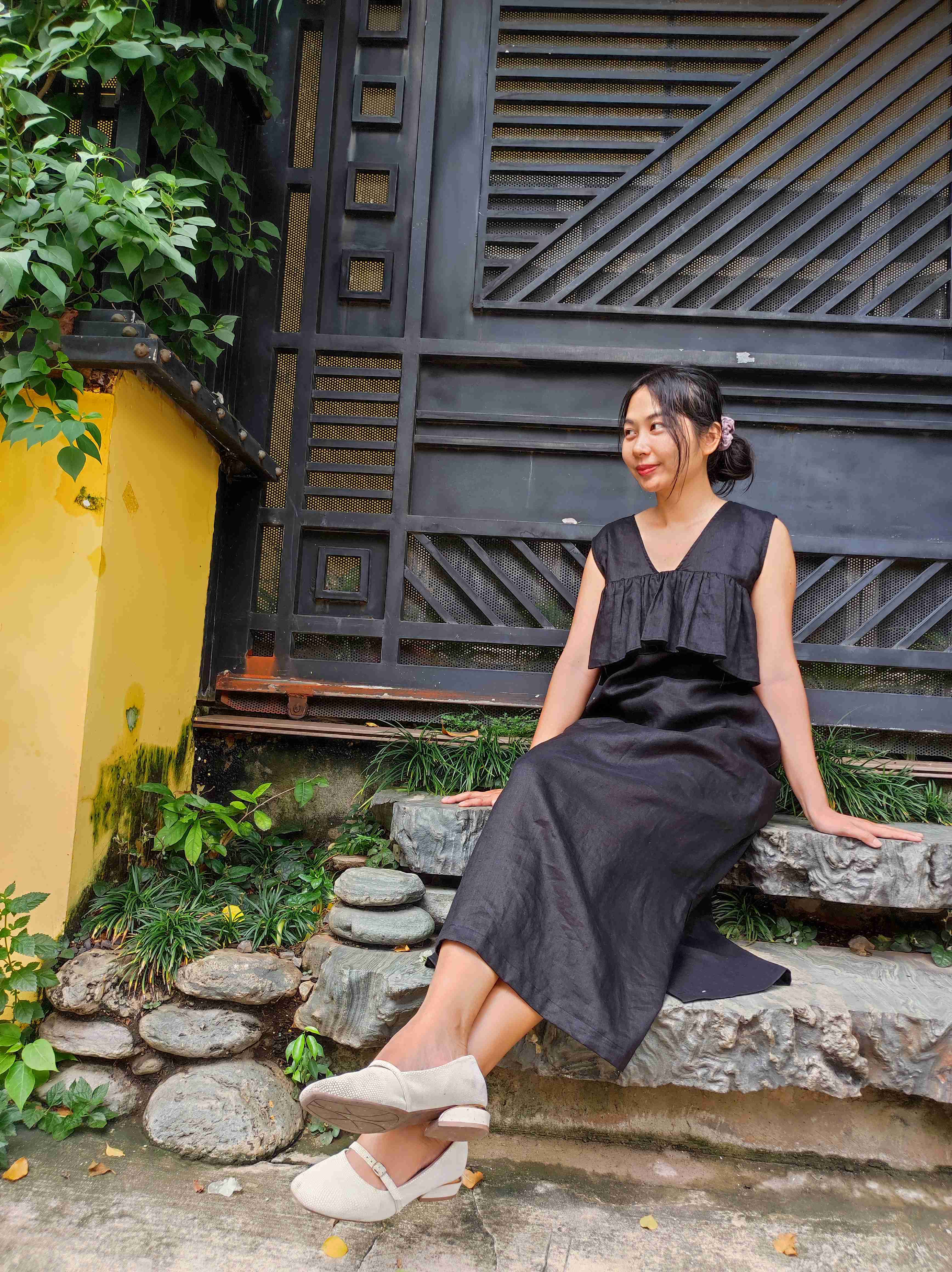 Đầm suông dài linen tưng premium bèo trước ngực - ANAM