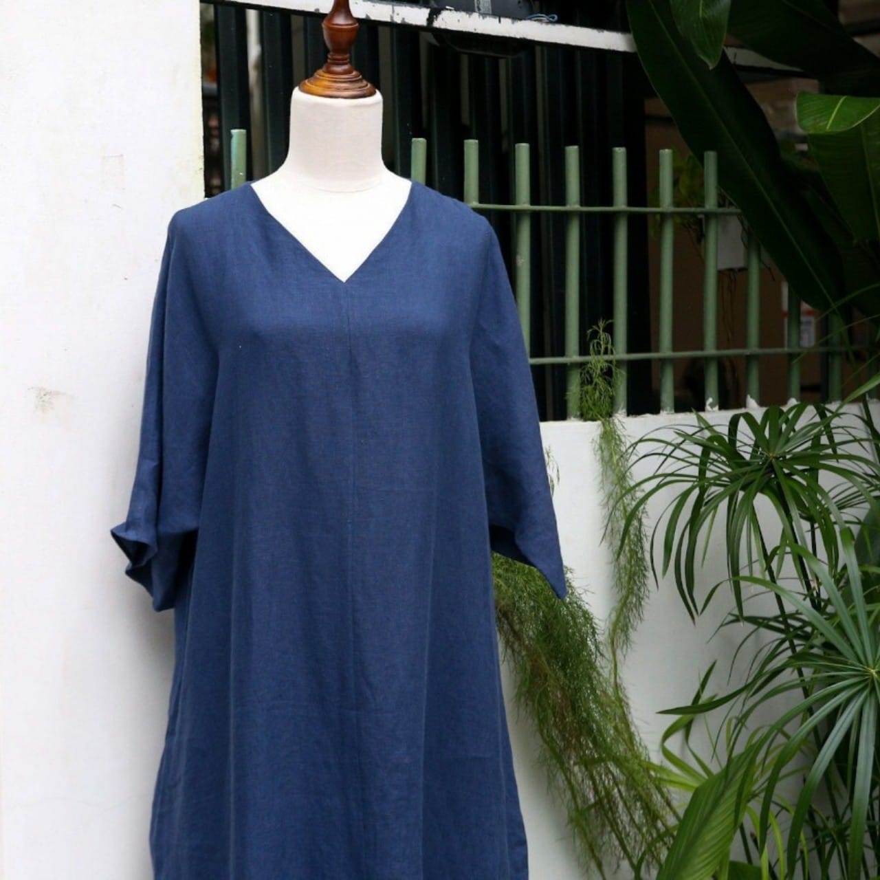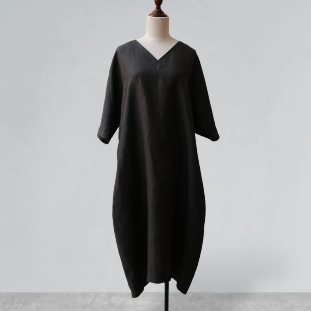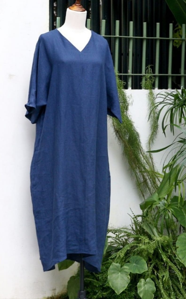 Đầm suông dài dáng rộng cổ tim chất liệu linen tưng premium - ANAM